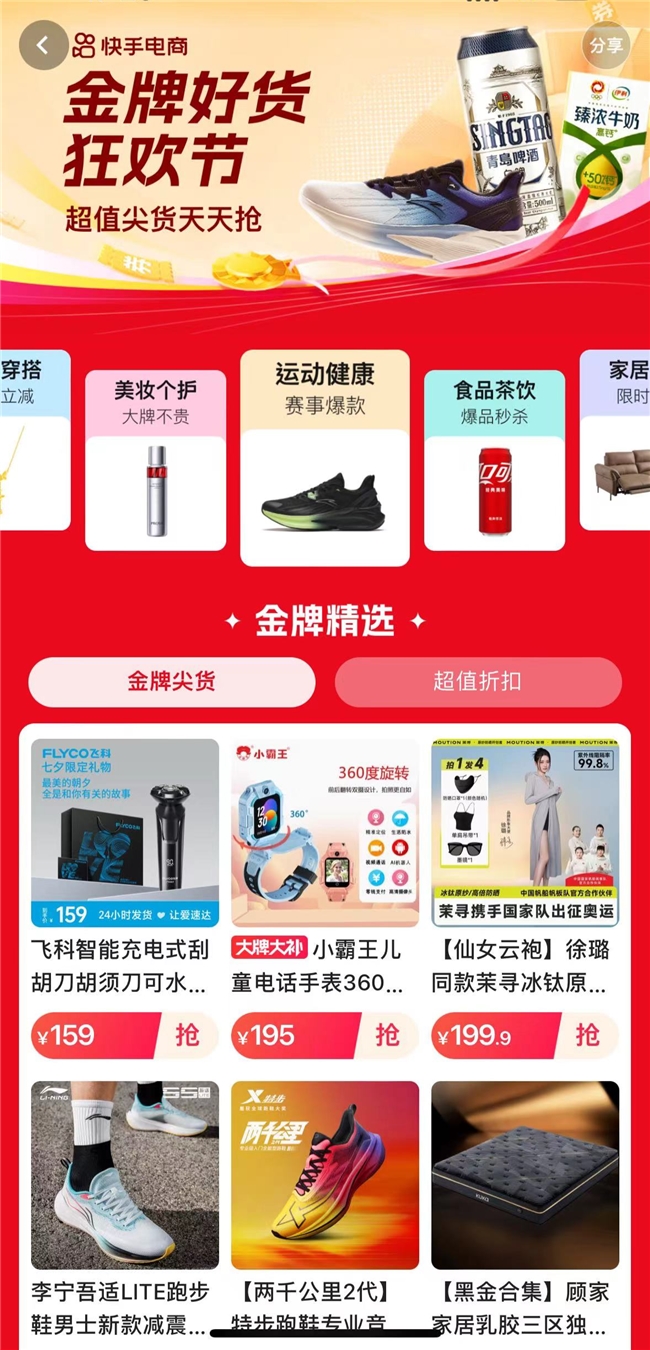 在电商方面,快手通过“冠军店计划”为品牌商家提供政策保障和流量扶持,截至目前已经有约2800家商家报名参与。用户可以在“金牌好货”分会场,购买品牌尖货以及超值折扣商品,特步、安踏等众多品牌商家也将在直播间为用户送出大量惊喜福利。此外,快手超级品牌日等品效IP也将在奥运期间升级玩法,助力品牌实现声量爆发和生意繁荣。