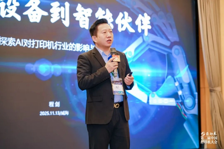 其中,上海晨光打印机项目负责人程剑肯定了本届打印机与供应链大会的选题,并分享了他探索的从打印设备到智能伙伴,讲述AI对打印机行业的影响与赋能。他认为AI是打印机行业进化的必由之路,将驱动行业从设备销售转向服务与价值创造。拥抱AI时代,共建行业生态,为用户创造智能体验是每一位从业人员的必经之路。