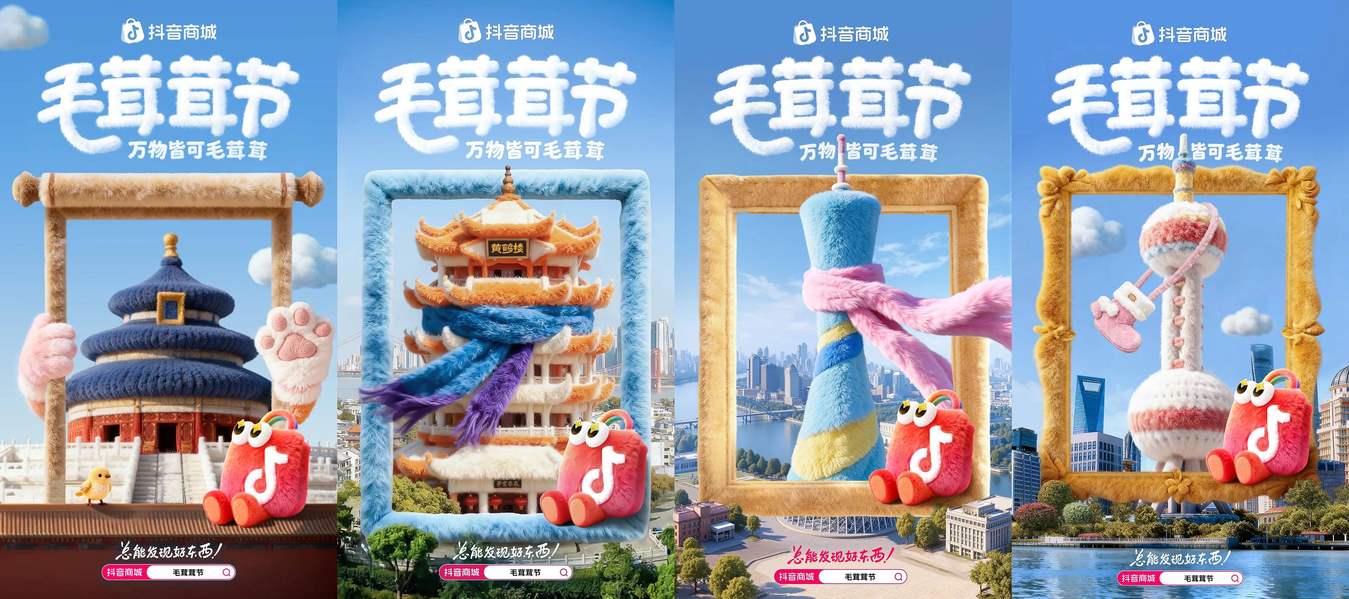 抖音商城官方还携手Keen、UGG、海尔、伊利等重点商家,推出多组创意海报,让冰箱等品牌好物快速“变身”,上海东方明珠、东方明珠、故宫、广州塔等地标被加上一层毛绒滤镜,城市景观瞬间变得柔软可亲,变身冬日梦幻乐园;经典艺术作品如《戴珍珠耳环的少女》和《星空》也被“改造”,在柔软毛茸质感中焕发全新生命力,引发用户“求周边”热潮。