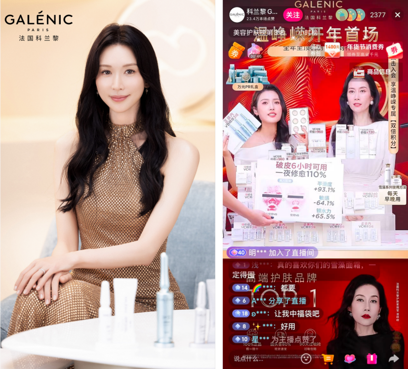 以「法国科兰黎」为例,其在本次年货节中,洞察到抖音用户对明星和达人内容的强烈兴趣和消费习惯,并结合“年货节”和“情人节”双节并行的趋势,将护肤品重塑为“悦己”与“赠礼”的情感载体。