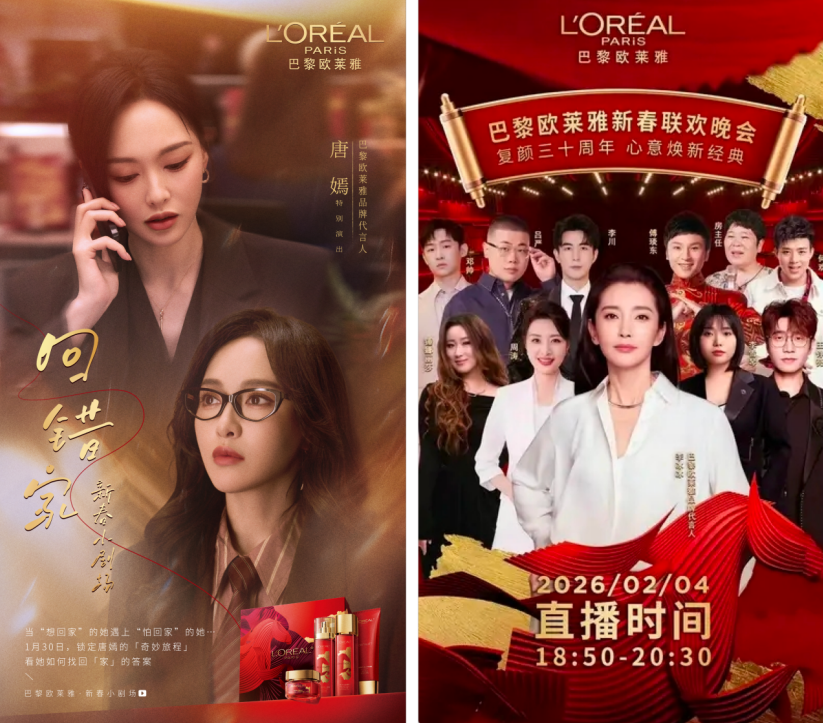 如果说法国科兰黎是在强化“送礼心智”,「巴黎欧莱雅」则是围绕“新年第一份自信”这一洞察,主打“过年回家就送欧莱雅”的国民级场景。