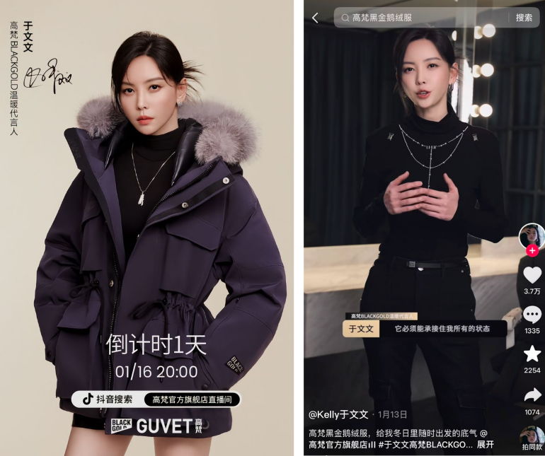 在具体的场景布局上,高梵邀请实力派歌手于文文担任“年货节温暖大使”,通过前置巨量星图工具定向投放,并配合官号直播预约组件,实现了对高净值人群的精准蓄水。而在“「于」见新我”主题大场中,高梵将直播间转化为社交穿搭秀场,并定制“于文文新年推荐款”专属货组。这种以明星新年限定货组为核心的打法,不仅驱动大场当日生意破峰2300万,更实现了“雪壳5.0限定版”客单价20%的提升,完成了声量与销售价值的双重升级。